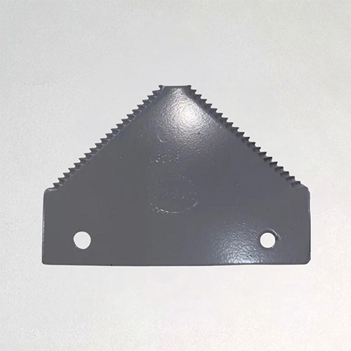 Este modelo con doble pico de gran solidez presenta los mismos agujeros que las cuchillas originales para una perfecta cohesión con los tornillos. Apto para la cosecha de grano fino y soja. Dentado: grueso.
